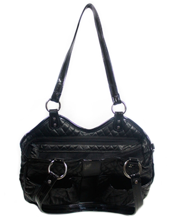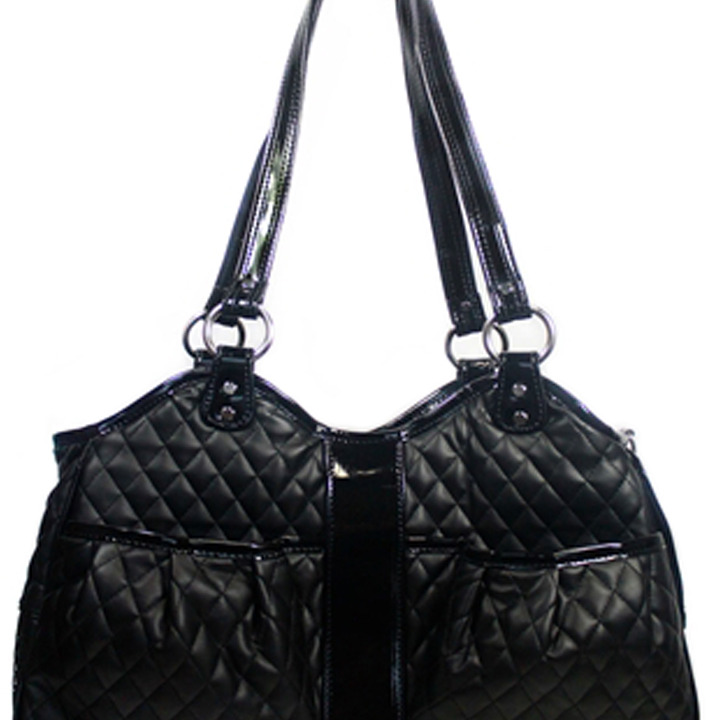 Introducing the Black Quilted Luxe Metro Bag. The newest addition to the Petote collection of designer dog carriers. The quilted luxe metro is a gorgeous handbag style dog carrier made from soft quilted faux leather with black patent accents.