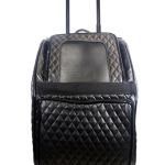 Introducing the Quilted Luxe Rio Bag On Wheels.  Travel in style with this amazing 3 in 1 dog carrier on wheels.  The Rio Bag functions as a roller bag, backpack, and also a car seat for your companion.  The Rio on wheels is a best seller for dogs and cats!  Shown here in black quilted luxe faux leather with shiny black patent trim. Very functional and ideal for stress free, pain free travel with your pet.  Also . The Rio Bag also allows for maximum ventilation and exposure, interior , an , front zipper compartment for storage.