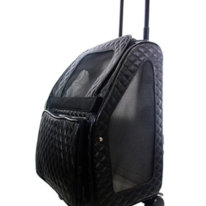 airline approved animal print backpack barcelona black quilted canvas tote carrier with wheels designer dog carrier duffle bag Made in the USA metro multi use outside pocket travel